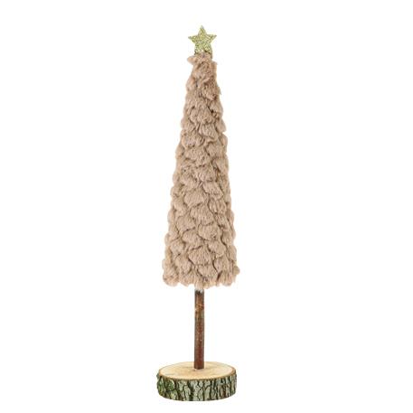 Έλατο με γούνα ταμπά σε ξύλινη βάση και αστέρι με χρυσό γκλίτερ Ø7 x 33