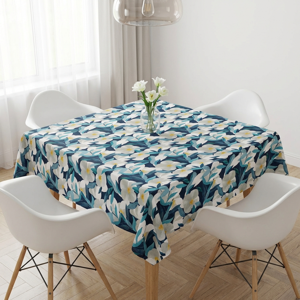 Ανακαλύψτε την ομορφιά του Βαμβακοσατέν με το εντυπωσιακό μας φλοράλ τραπεζομάντηλο σε μπλε αποχρώσεις. Το ύφασμα τύπου καραβόπανο είναι από 70% βαμβάκι που το καθιστά μαλακό και ανθεκτικό. Τοποθετήστε το στο τραπέζι της κουζίνας σας ή την τραπεζαρία για μια όμορφη εμφάνιση. Συνδυάστε το με τα υπόλοιπα προϊόντα της ίδιας σειράς για ένα ολοκληρωμένο αποτέλεσμα.