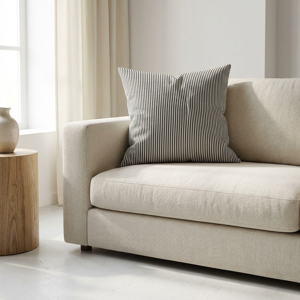 Διακοσμητικές θήκες από υψηλής ποιότητας καραβόπανο, σε μοναδικό ριγέ σχέδιο. Ιδανικές για να προσθέσετε μια κομψή πινελιά στον χώρο σας. Το μαύρο χρώμα τους ταιριάζει τέλεια με κάθε διακόσμηση. Mε φερμουάρ στο κάτω μέρος, αυτές οι θήκες προσφέρουν ευκολία στην αφαίρεση και πλύση.