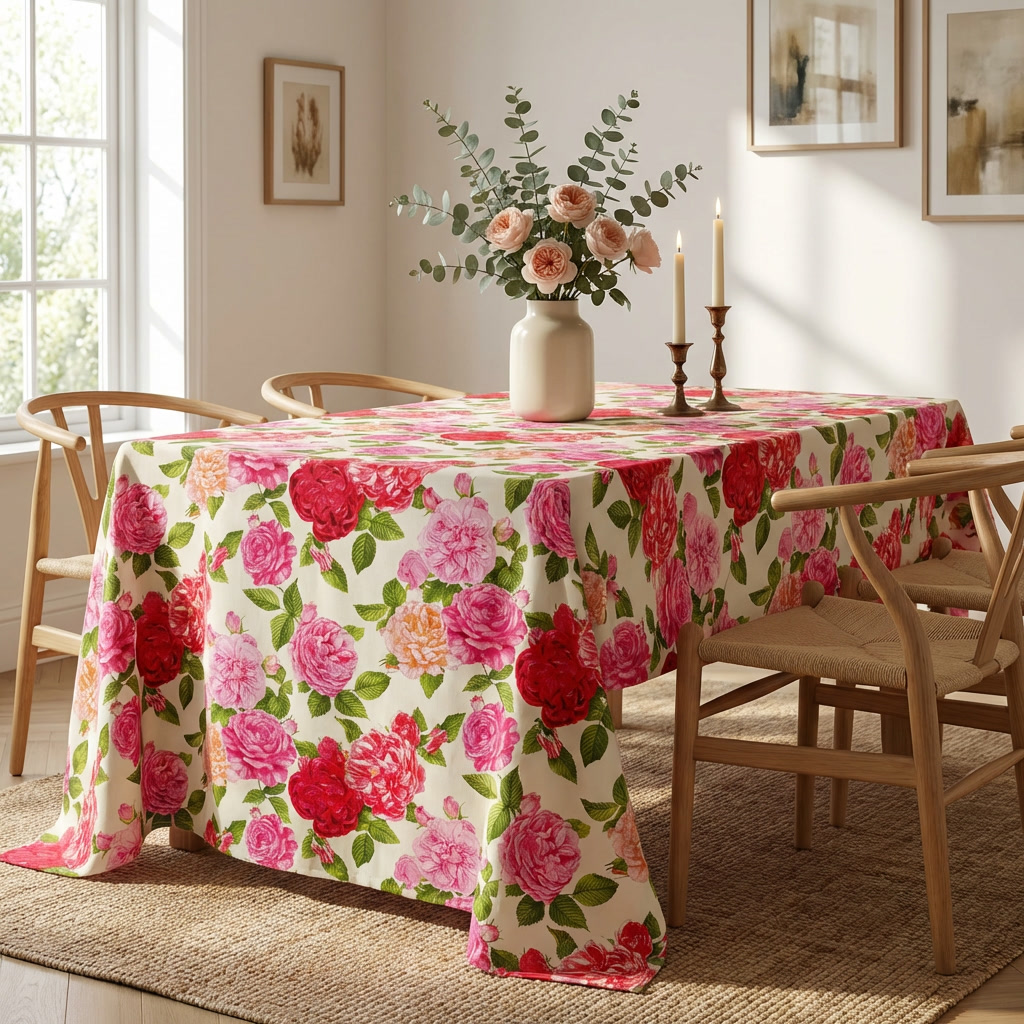 Εμπριμέ τραπεζομάντηλο πολύχρωμο με φλοράλ σχέδιο.
