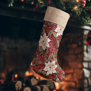 Διακοσμητική χριστουγεννιάτικη κάλτσα, ιδανική για να στολίσει το τζάκι, το δέντρο ή οποιοδήποτε γιορτινό σημείο του σπιτιού. Κατάλληλη για τοποθέτηση δώρων, γλυκών και μικρών εκπλήξεων, προσθέτοντας μια ζεστή και χαρούμενη πινελιά στη χριστουγεννιάτικη ατμόσφαιρα.