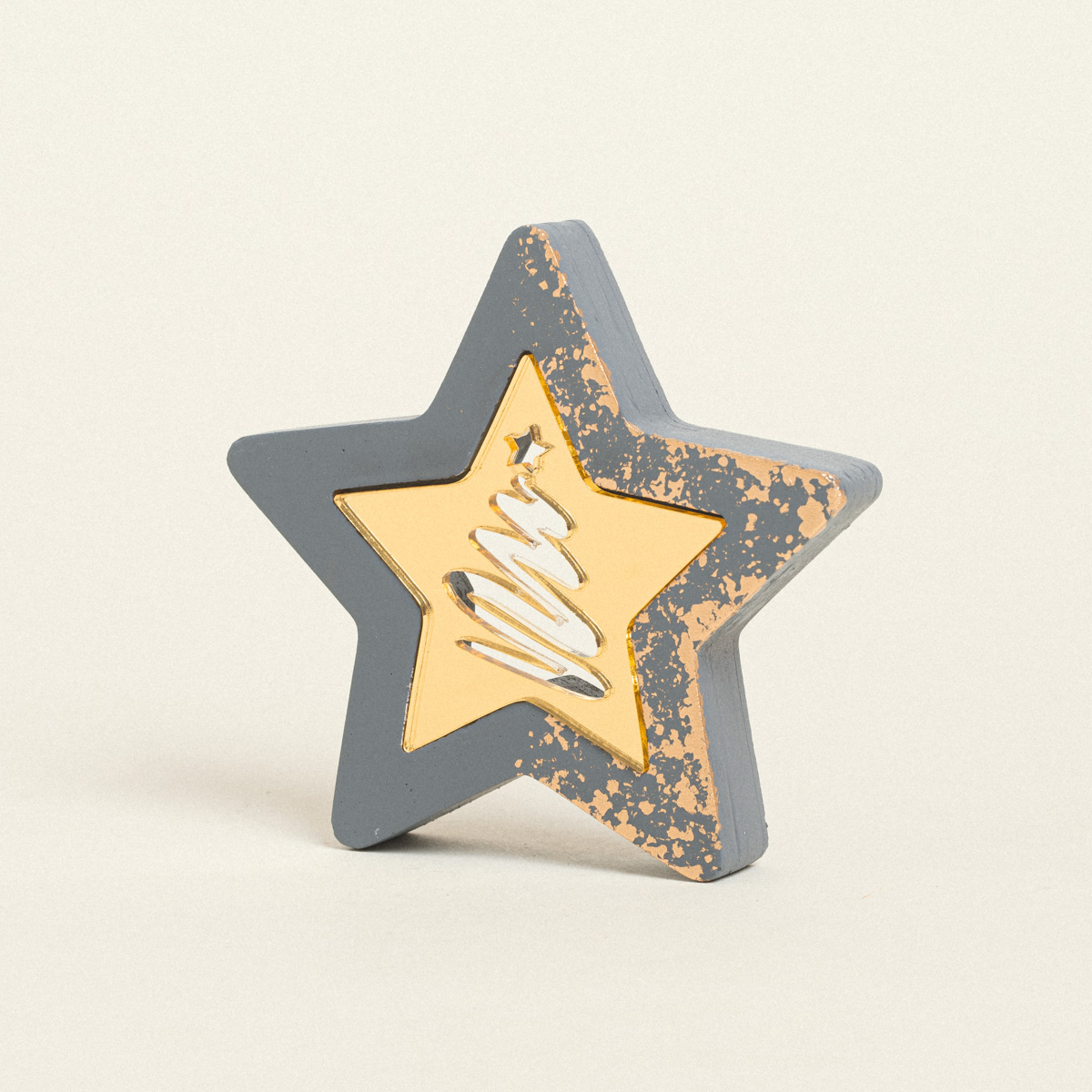 ΚΕΡΑΜΙΚΟ ΕΠΙΤΡΑΠΕΖΙΟ ΑΣΤΕΡΙ ΜΕ ΧΡΥΣΟ ΠΛΕΞΙ 11 x 11 cm ΓΚΡΙ