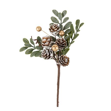 Κλαδί με μούρα και κουκουνάρια χιονισμένο, πράσινο και χρυσό 19 cm