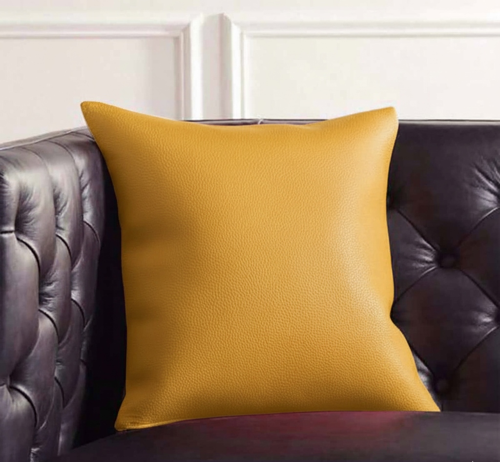 Ανακαλύψτε τα κομψά δερμάτινα διακοσμητικά μαξιλάρια που προσθέτουν μια πινελιά πολυτέλειας στο χώρο σας. Διαθέσιμα σε εντυπωσιακό κίτρινο χρώμα, αυτά τα μαξιλάρια είναι ιδανικά για να ανανεώσετε το σαλόνι σας. Ελάχιστο για αγορά 2 τεμάχια, σύνθεση 78% PVC / 20% PES / 2% PU. Διαθέτουν φερμουάρ στο κάτω μέρος για εύκολη αφαίρεση και καθαρισμό.