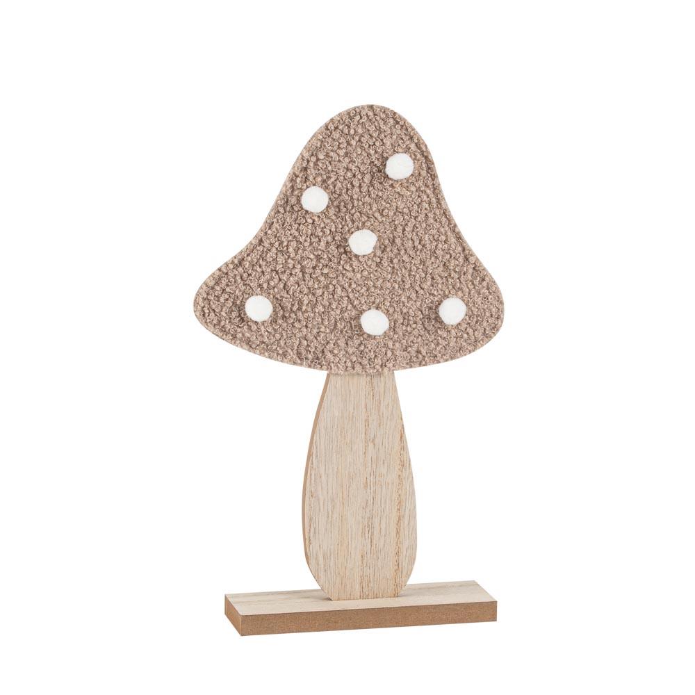 Μανιτάρι σε βάση, ξύλο με μπουκλέ Με φουντάκια, ταμπά και λευκό 30 x 18 cm