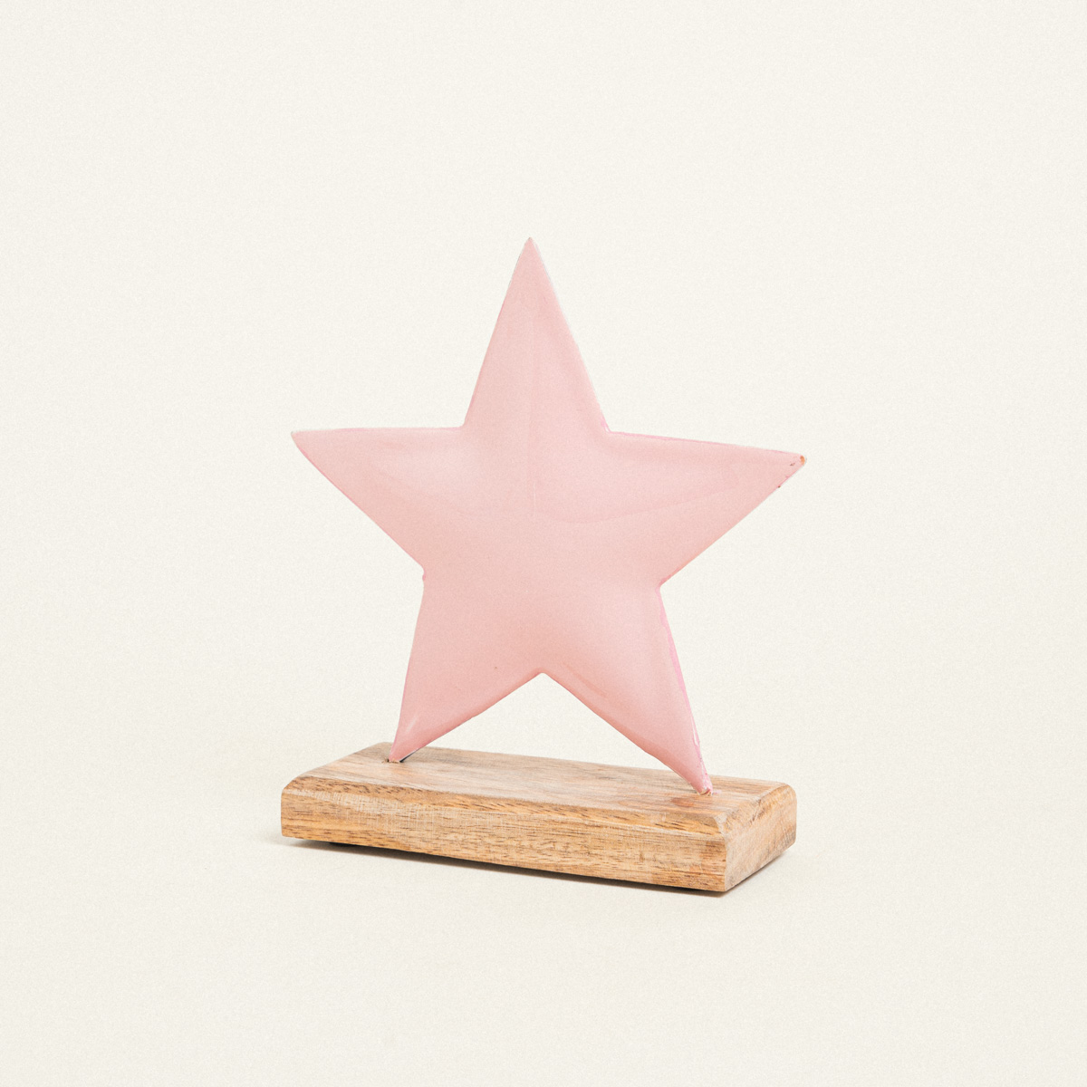 Αναδείξτε τον χώρο σας με αυτό το γλυκό και μοντέρνο διακοσμητικό: το **ΜΕΤΑΛΛΙΚΟ ΑΣΤΕΡΙ ΜΕ ΒΑΣΗ 15 x 16 CM ΡΟΖ**. Αυτό το υπέροχο αστέρι, σε μια απαλή ροζ μεταλλική απόχρωση, στέκεται με χάρη πάνω σε μια κομψή ξύλινη βάση. Ιδανικό για να προσθέσετε μια νότα ονειρικής αισθητικής σε παιδικά δωμάτια, στο σαλόνι ή ακόμα και στο γραφείο σας. Ένα διαχρονικό κομμάτι που συνδυάζει την απλότητα με την εκλεπτυσμένη γοητεία.