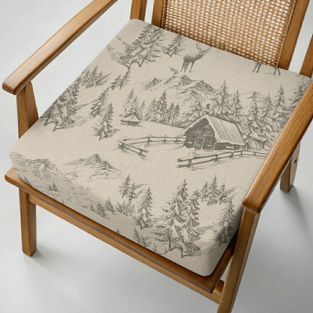 Μπεζ μαξιλάρι καθίσματος με χειμερινό δασικό σχέδιο ελαφιών.