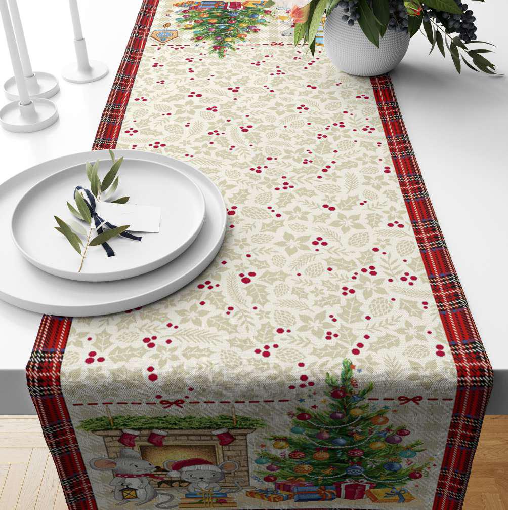 Το χριστουγεννιάτικο ράνερ με μέγεθος 47×140 εκ. είναι ιδανικό για να διακοσμήσετε το τραπέζι σας τις γιορτές. Με σχέδιο που περιλαμβάνει εορταστικό δέντρο και χαριτωμένα ζωάκια, προσφέρει μια ζεστή και ευχάριστη ατμόσφαιρα. Το κόκκινο καρό πλαίσιο προσθέτει μια κλασική πινελιά, συνδυάζοντας την παράδοση με τη μοντέρνα αισθητική.