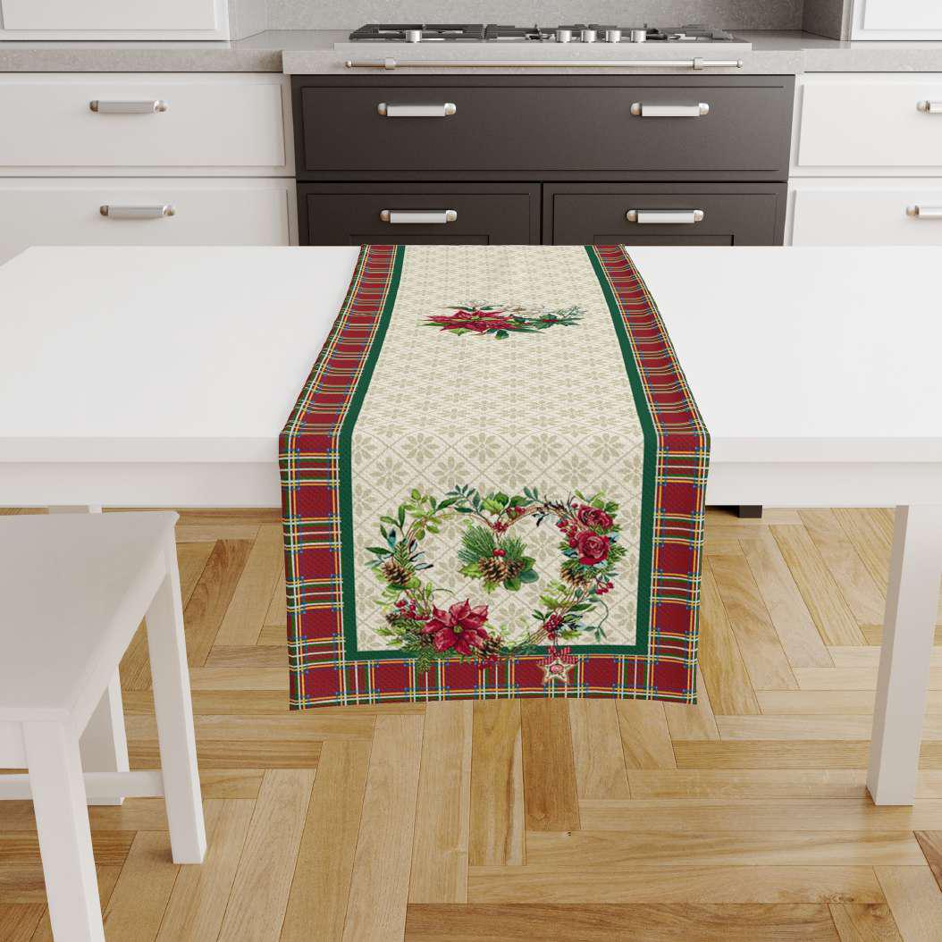 Το χριστουγεννιάτικο ράνερ με διάσταση 47Χ140 εκ. είναι η ιδανική επιλογή για τη διακόσμηση του τραπεζιού σας κατά την εορταστική περίοδο. Κατασκευασμένο από ανθεκτικό ύφασμα στόφα, συνδυάζει την ποιότητα με την αισθητική. Το σχέδιο περιλαμβάνει πλούσια χρώματα, όπως κόκκινο και πράσινο, με λουλούδια και στεφάνια που προσθέτουν μια γιορτινή πινελιά στον χώρο σας.
