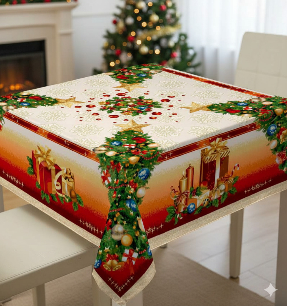 Το Χριστουγεννιάτικο τραπεζομάντηλο 140Χ140 Στόφα συνδυάζει την κομψότητα με την πρακτικότητα. Το ύφασμα είναι κατασκευασμένο από βαμβάκι υψηλής ποιότητας με προσθήκη πολυεστέρα, καθιστώντας το ιδανικό για εορταστικές συγκεντρώσεις. Το σχέδιο του περιλαμβάνει εορταστικά μοτίβα όπως δώρα και χριστουγεννιάτικα δέντρα σε αποχρώσεις του κόκκινου και του χρυσού, προσφέροντας μια ζεστή και γιορτινή ατμόσφαιρα στο τραπέζι σας.