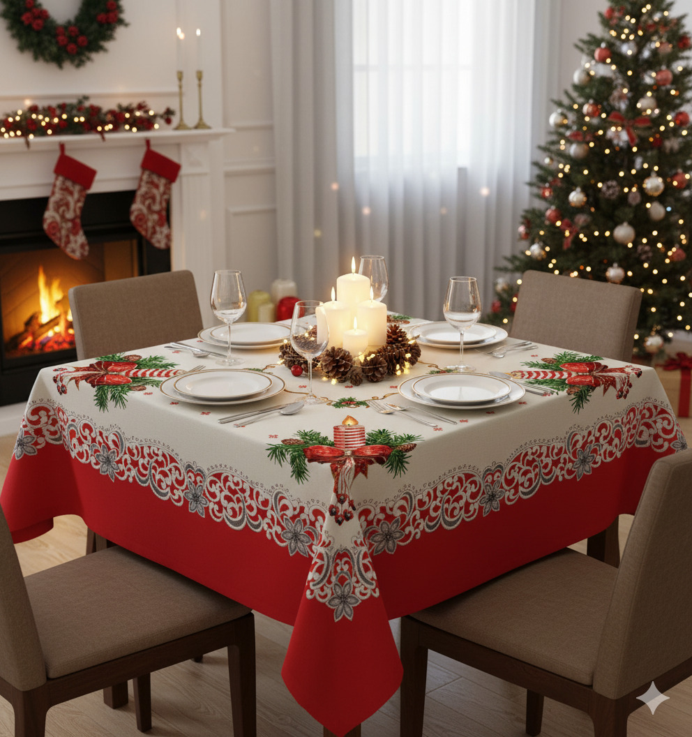 Το Χριστουγεννιάτικο Τραπεζομάντηλο Στόφα είναι ιδανικό για να προσθέσετε μια γιορτινή πινελιά στο χώρο σας. Με διάσταση 140×140, είναι κατασκευασμένο από υψηλής ποιότητας βαμβάκι με προσθήκη πολυεστέρα, προσφέροντας ανθεκτικότητα και βαρύτητα. Το σχέδιο περιλαμβάνει ζωντανά χρώματα με κόκκινες και πράσινες λεπτομέρειες, ιδανικό για το χριστουγεννιάτικο δείπνο σας. Το ύφασμα είναι ανθεκτικό σε βρωμιά και μπορεί να πλυθεί εύκολα στο πλυντήριο στους 40 βαθμούς, ενώ το σιδέρωμα γίνεται παιχνιδάκι.