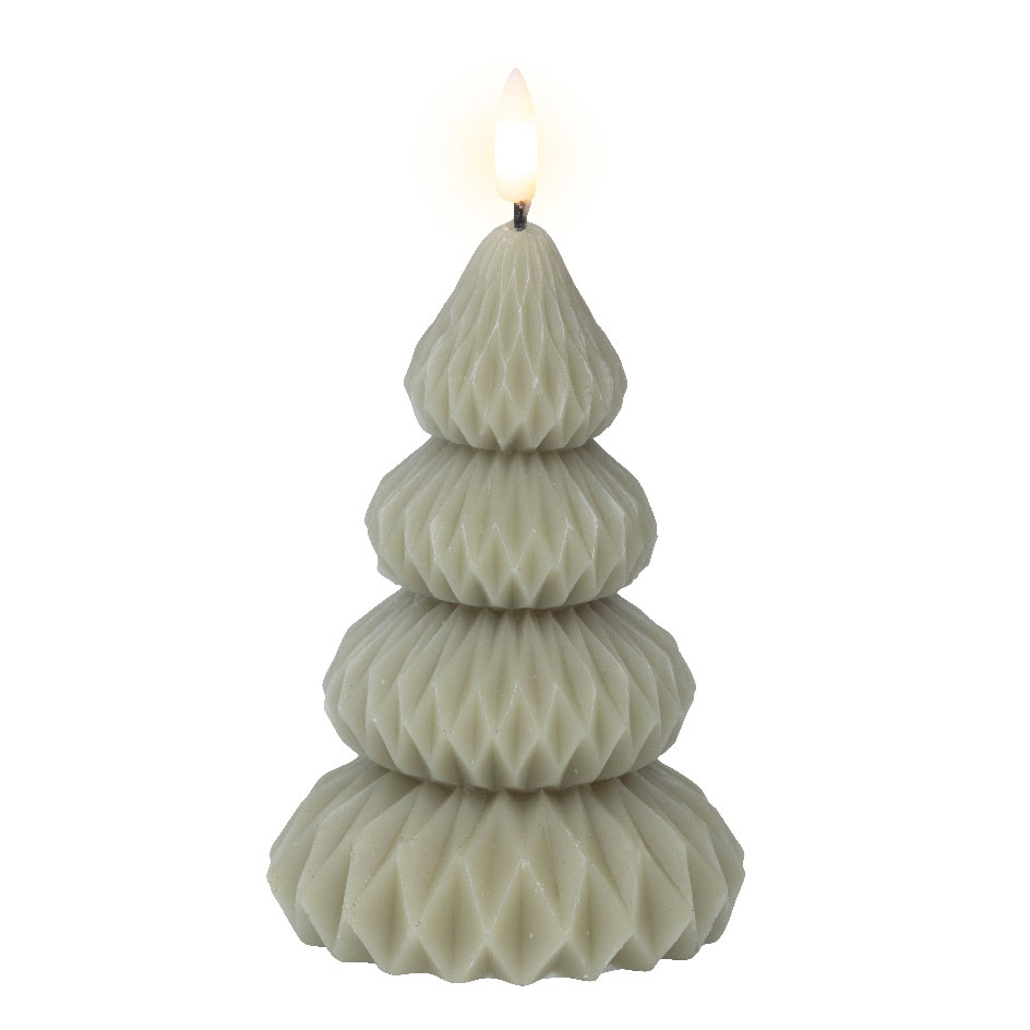 Μετατρέψτε κάθε χώρο σε μια όαση ζεστασιάς με το εντυπωσιακό **LED Κερί Δέντρο 7.2 x 10.5 cm**. Αυτό το μοναδικό διακοσμητικό φέρει ένα κομψό, κλιμακωτό σχέδιο δέντρου με λεπτομερές γεωμετρικό μοτίβο, προσδίδοντας μια μοντέρνα πινελιά. Το απαλό, ρεαλιστικό LED φως του μιμείται τέλεια τη ζεστασιά μιας φλόγας, προσφέροντας ατμόσφαιρα και ασφάλεια χωρίς τον κίνδυνο της φωτιάς ή του καπνού. Ιδανικό για εορταστική ή καθημερινή διακόσμηση, δημιουργώντας μια αίσθηση ηρεμίας.